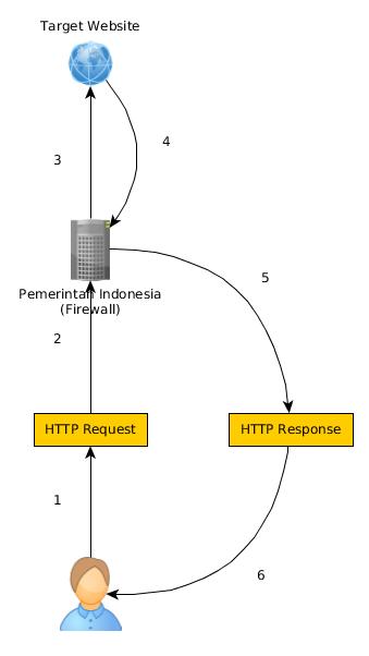 - Data dari website target akan melwati firewall pemerintahan jika sesuai dengan ketentuan akan dilanjutkan ke user.